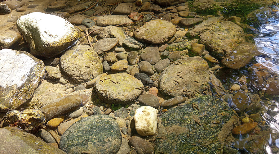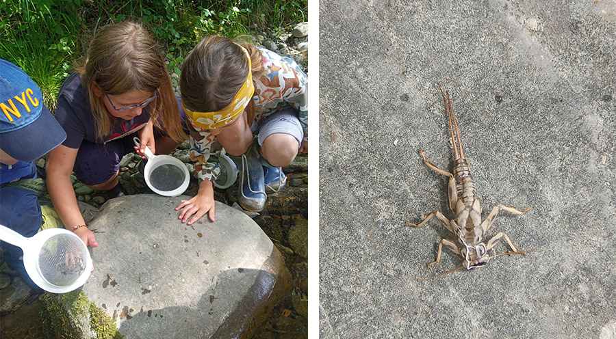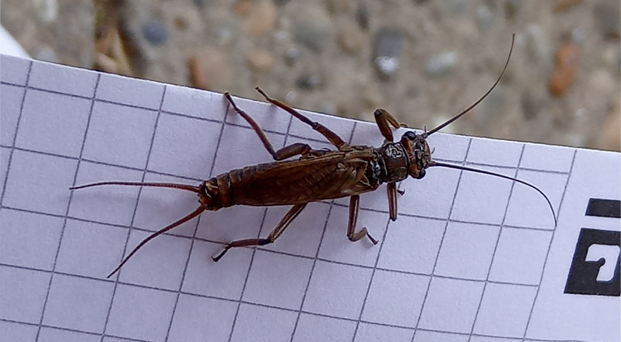 Am Stein finden wir die Hüllen von geschlüpften Steinfliegen.